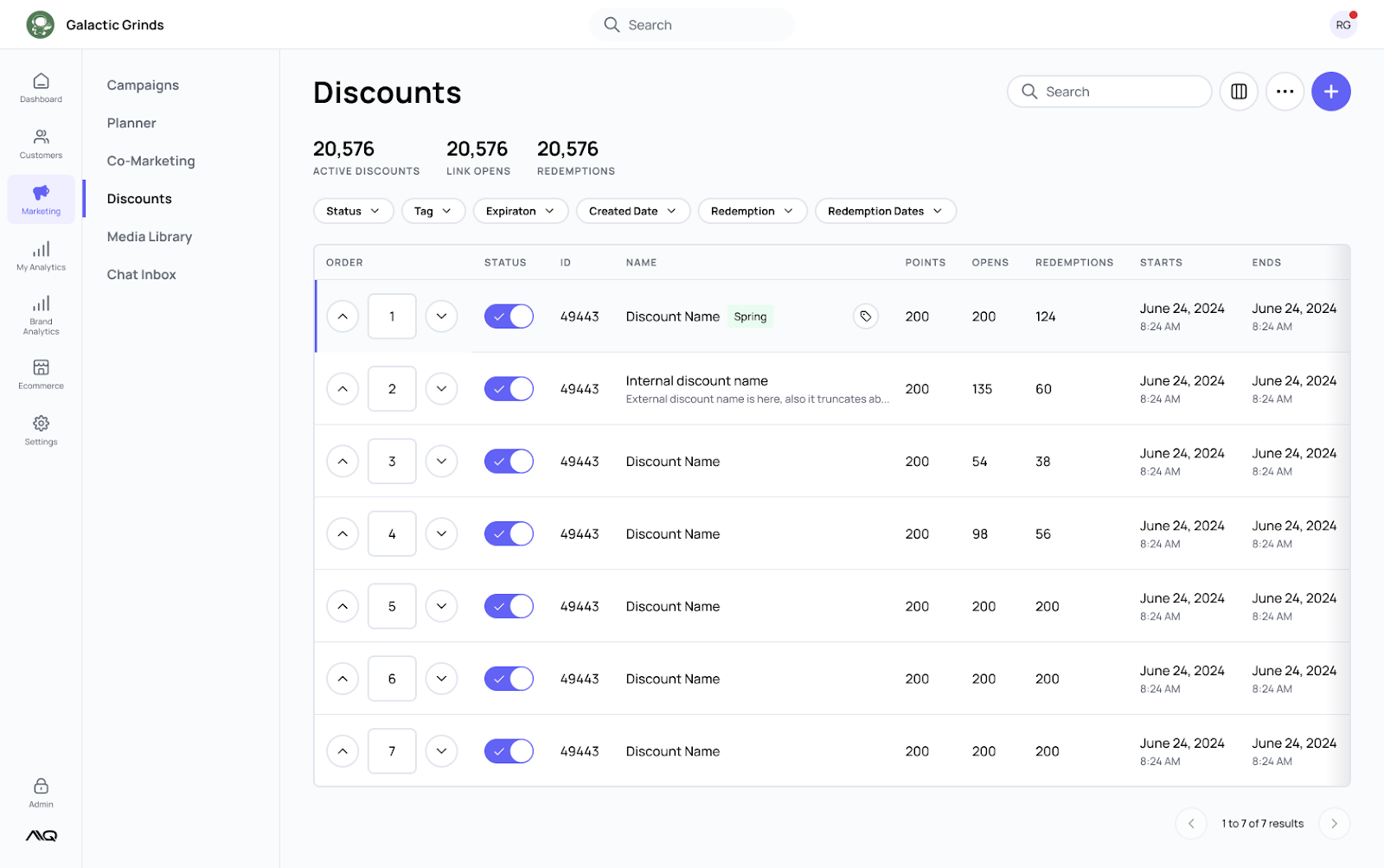 Previously, discounts were limited to single-use or unlimited redemptions. Now operators can set any redemption limit value, such as five uses per customer.
