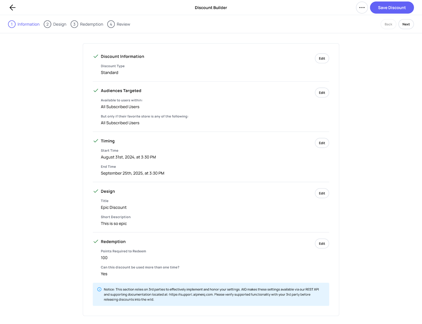 Discounts play a critical role across the AIQ ecosystem, from loyalty rewards and marketing campaigns to mobile experiences.